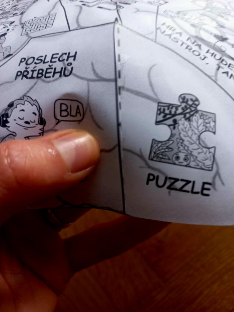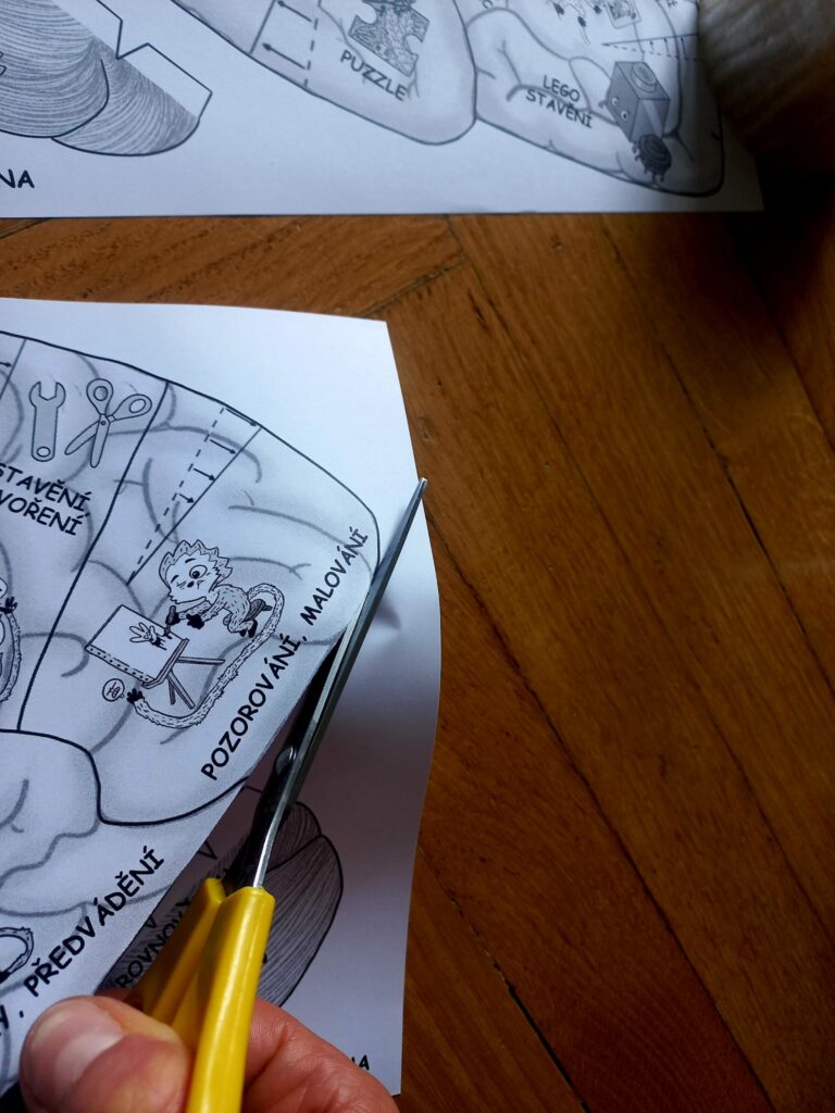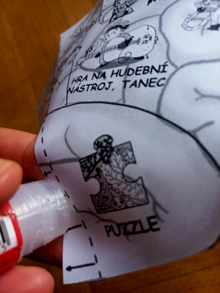 8. Lepící páskou jej přilepte jako prodloužení k zadní části mozku (aktivity Pozorování, malování a Sport).